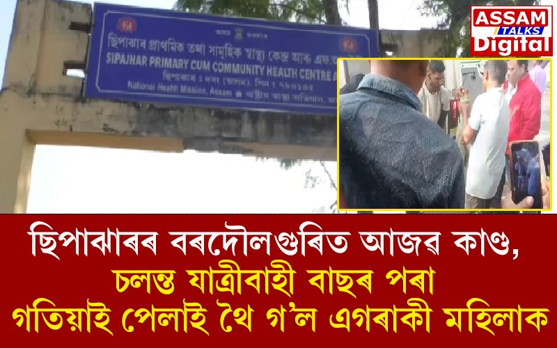 ৰাষ্ট্ৰীয় ঘাইপথত মহিলাগৰাকীক পেলাই দিয়াত অচেতন হৈ পৰে। মহিলাগৰাকীক গতিয়াই পেলাই থৈ যোৱাৰ পাছতেই তীব্ৰ গতিত পলায়ন কৰে আলিয়া ট্ৰেভেলছ বাছখনে। লগে লগে প্ৰত্যক্ষদৰ্শীয়ে মহিলাগৰাকীক ছিপাঝাৰ সামূহিক স্বাস্থ্যকেন্দ্ৰত ভৰ্তি কৰোৱায়।