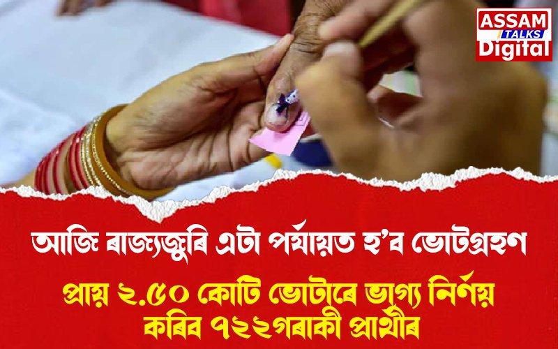 ৯ এপ্ৰিল, ২০২৬ঃ আজি ৰাজ্যজুৰি এটা পৰ্যায়ত হ’ব ভোটগ্ৰহণ । পুৱা ৭ বজাৰে পৰা ৰাজ্যৰ ১২৬টা সমষ্টিতে ভোটগ্ৰহণ ।