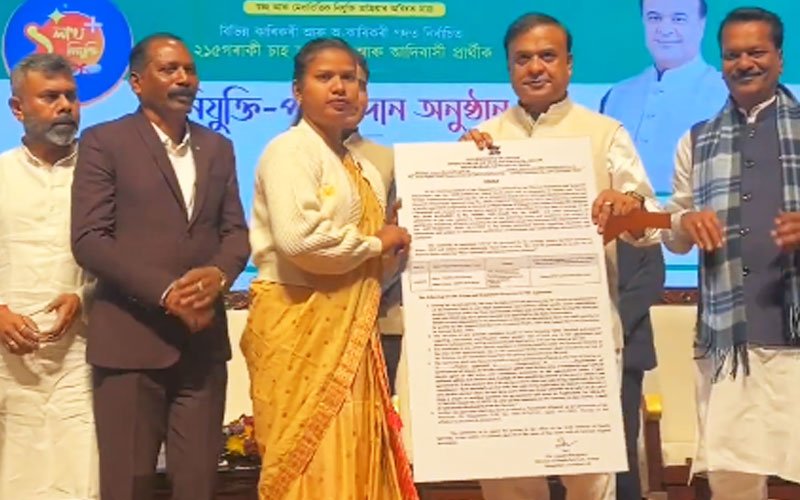 Assam Chief Minister Himanta Biswa Sarma on Wednesday distributed appointment letters to 215 candidates belonging to the Tea Tribes and Adivasi communities for various technical and non-technical positions in the state’s health sector. The programme was held at Srimanta Sankardeva Kalakshetra in Guwahati.