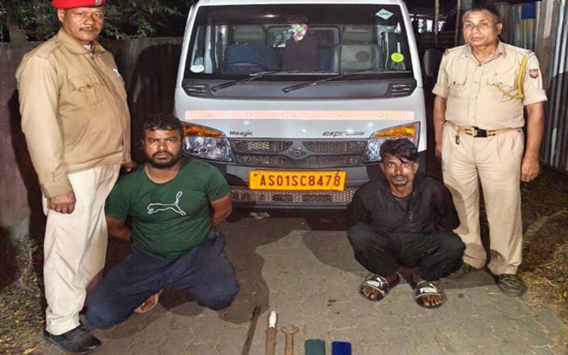 The accused have been identified as Abdul Latif (30) and Atikur Rahman (25), both hailing from Hajo. Police stated that the duo was found roaming suspiciously inside a Magic vehicle. During the search, tools commonly used for break-ins and two stolen mobile phones were recovered.
